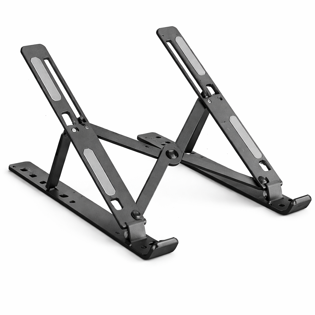 Sleek, sturdy, and highly practical, this adjustable laptop stand is a great upgrade for any workspace. Its solid aluminum build feels premium and stable, while the foldable design makes it easy to carry or store. Height and angle adjustments help improve posture and reduce neck strain during long work sessions. The non-slip pads keep your laptop secure without scratching. Overall, it’s a clean, minimalist solution that combines comfort, portability, and durability in one smart accessory.